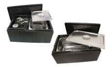 The freezing units are compact and easy to handle. They are made of a styrofoam box of high quality, an inner container of stainless steel and a floating rack. The stainless steel container is filled with liquid nitrogen. The rack keeps the needed distance between 0.5 ml or 0.25 ml straws during the first down phase, while it floats on liquid nitrogen. After that, the straws get manually immersed into the nitrogen.
